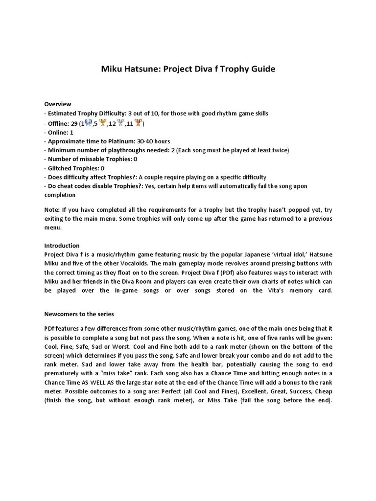 Miku Hatsune Project Diva F Trophy Guide Roadmap Leisure
